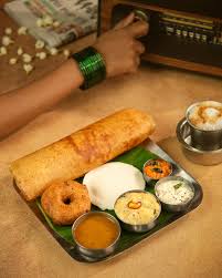 A South Indian favourite featuring soft idlis, crispy plain dosa, and golden vada, served with chutneys and sambar for a complete traditional meal.